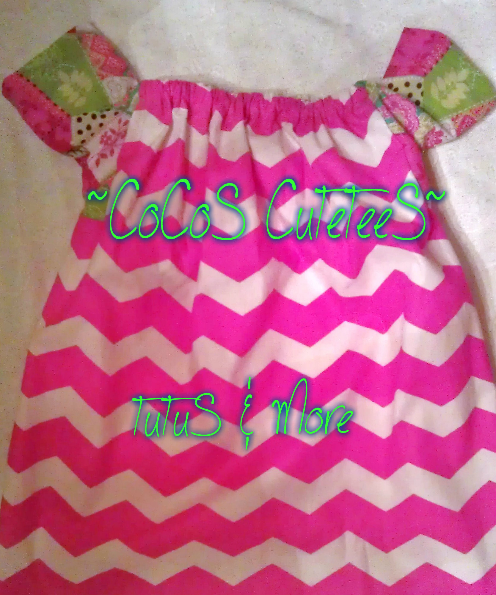 Summertime bliss! Bright pink chevron w/ green/pink fun patchwork sleeves. Adorable for summer! This can be made in any size infant-girls 6