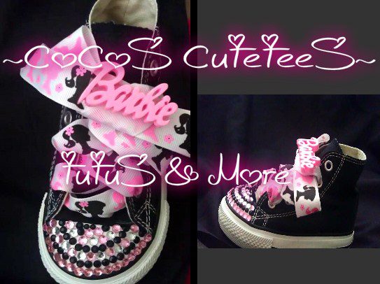 These over the top shoes are a necessity for all lil divas! Great for photos, birthdays, or everyday cuteness! Includes hightop converse, multi color bling, specialty Barbie ribbon and "Barbie" topper. Price is for up to toddler size 10...price increases for larger sizes due to cost of converse and more bling, etc. Please email us if you would like a different theme or color converse, we can do all customizations. [email protected]